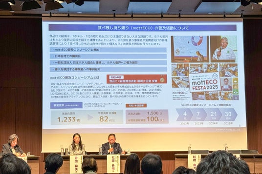 まず「食べきり」を徹底した後の「食べ残し持ち帰り(mottECO)」の推進について言及。初期段階での法的関係の不明瞭さや衛生的なリスクといった課題が普及を妨げていたことに触れ、これらを解消するため2024年12月に消費者庁・厚生労働省により策定された「食べ残し持ち帰り促進ガイドライン」の意義を強調しました。さらに、食品ロス削減が一企業単独では達成できない社会課題であるとの認識を示し、今後の展開として、業界の垣根を超えた「mottECO普及コンソーシアム」での活動や、「日本ホテル協会」との連携を強化し、「食べ残したものは自分で持って帰る文化」の普及・啓発に力を入れていく方針を表明しました。