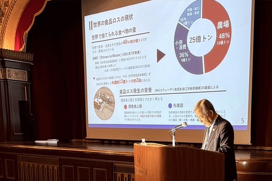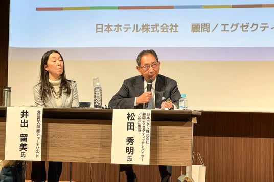 当日、会場ステージにて開催されたパネルトークセッション「『2050ゼロ・ウェイストちよだ』実現に向けて」では、当社 顧問の松田秀明がホテルでの取り組み実例を踏まえ、事業者の食品ロス削減の現状と課題、今後の展望について解説しました。