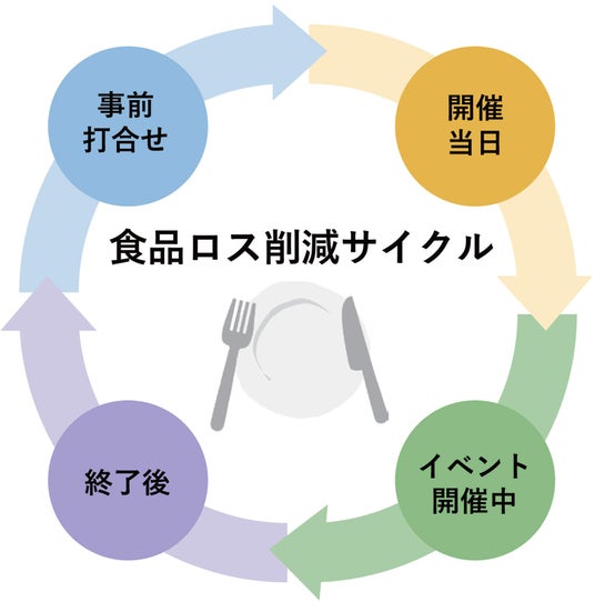 《食べきり》「3010運動」と食品ロス削減サイクル宴会料理の食べ残し量は食堂・レストランの食べ残し量の約3.5倍にもなるという課題に対し、宴会場を持つホテル全てで「3010運動」(乾杯後30分、お開き10分前に「食べきりタイム」を設ける)を積極的に推進しています。また、事前打ち合わせ(メニュー構成の精査)から、開催当日(盛り付け方の工夫、適量提供の声かけ)、終了後(残量データの次回への活用)まで、食品ロス削減サイクルを循環させることで完食率アップにつなげています。