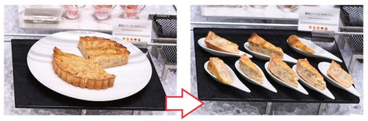 ホールで提供している「キッシュ」を時間帯に合わせてピース提供に変更