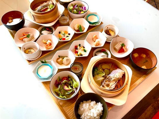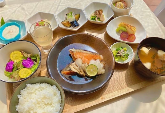 メイン+季節の小鉢が計9品、「小鉢いっぱい彩りランチ」は夜でも“夜ランチ”として楽しめます。