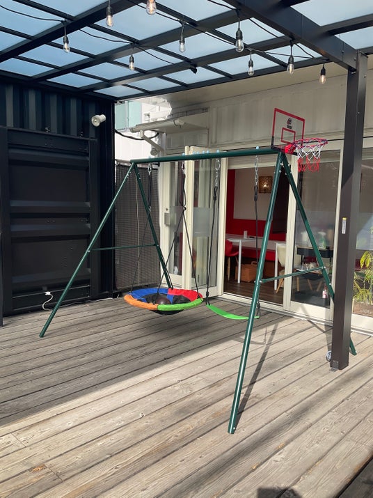 さらに、愛犬と気兼ねなく過ごせる「コンテナ席」は、大阪・堺市でペット同伴OK飲食店を探す方にも選ばれています。夜は犬同伴OKな居酒屋にもなります。 ※「コンテナ席」4名席×3卓