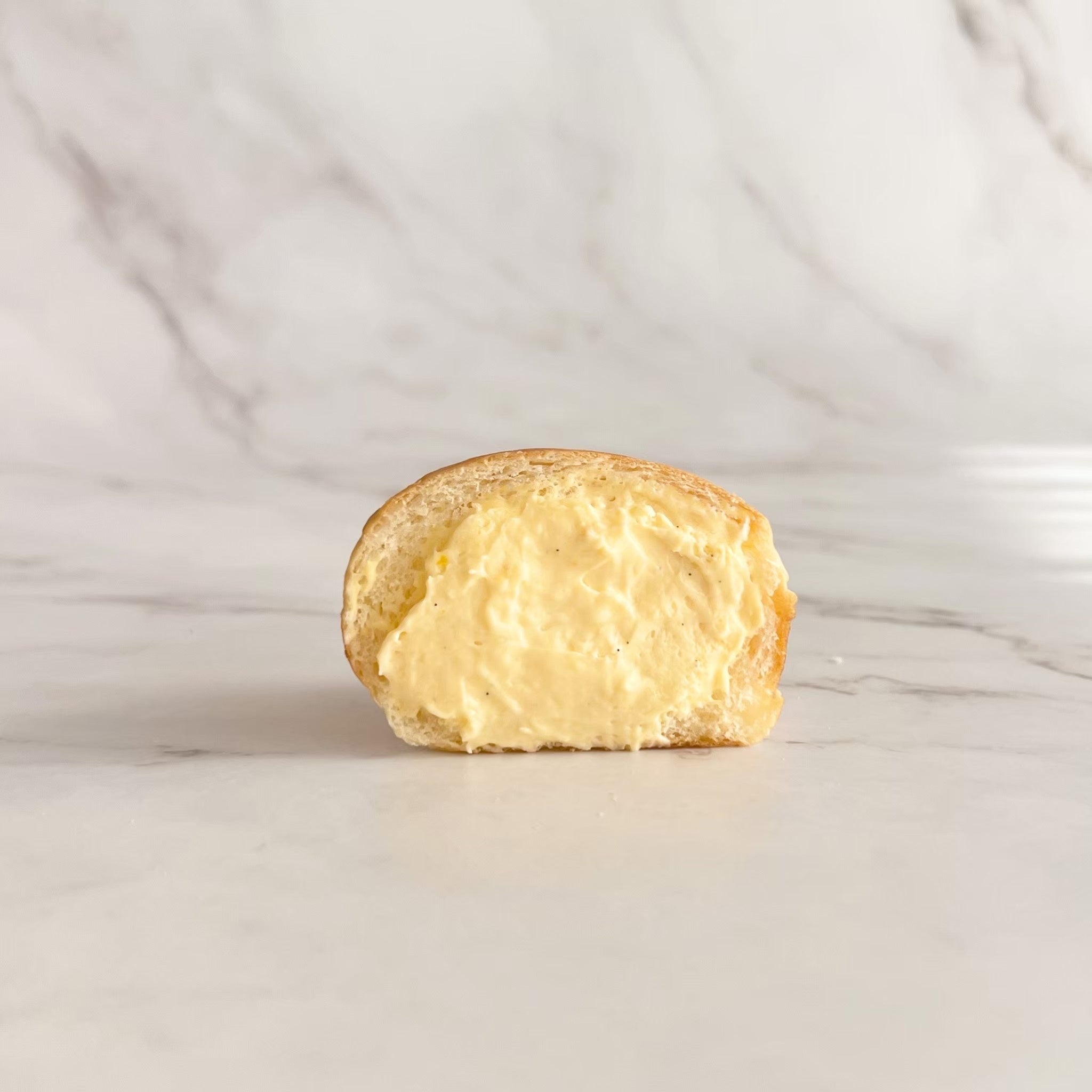 究極の生カスタードを限界まで詰め込むため、生地がはじけてしまうこともしばしば。パン生地もカスタードを楽しむために専用に開発したもので、生地がまるでカスタードクリームを包んでいるような錯覚に陥ります。