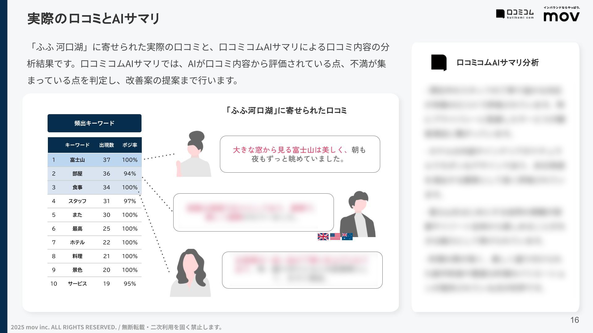 そのほか、口コミ分析レポートでは外国語口コミ評価やAI口コミ分析も発表しています。