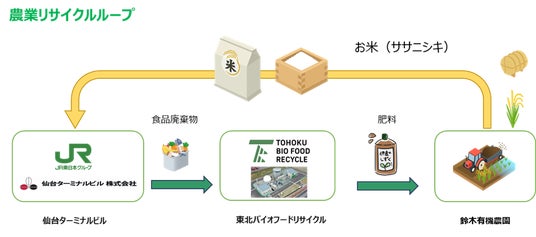 このたび、首都圏・仙台エリアにおいて、Jバイオおよび東北バイオが食品廃棄物から生産した肥料を活用して栽培されたお米を、グループ施設の飲食店で食材として提供する「農業リサイクルループ」が実現します。この取り組みは、Jバイオおよび東北バイオとお米の生産者との連携、JR東日本グループ会社および関連会社の協力により可能となり、JR東日本グループにおける「農業リサイクルループ」の取り組みが拡大します。