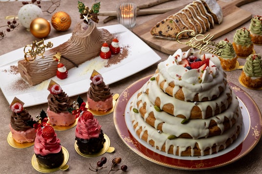 ホテル伝統の生クリームの搾り上げを纏ったクラシカルなケーキはもちろん、見た目が可愛らしいノエルもご用意しております。シュトーレンはアーモンド生地にオリジナルブレンドのドライフルーツを練り込み、伝統的な製法でじっくりと丁寧に焼き上げました。