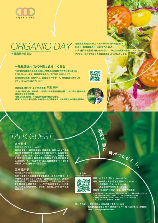 【主催・問合せ】 一般社団法人 次代の農と食をつくる会(有機農業の日 キャンペーン事務局)