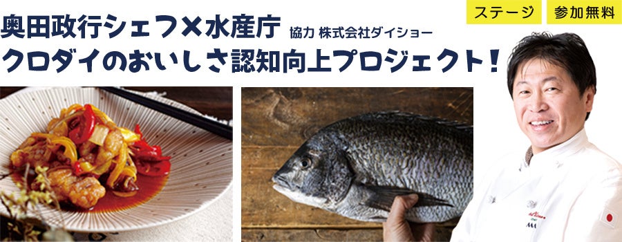 奥田政行シェフと水産庁の職員がクロダイの美味しさを伝えるステージと、奥田政行シェフ監修の「クロダイのイタリア風南蛮漬け」をさかな文化祭で限定販売!