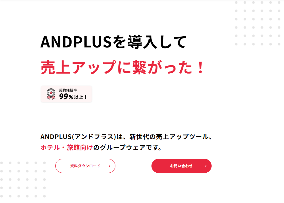 「ANDPLUS」は、ホテルや旅館など宿泊施設のレベニューマネジメントを支援するクラウドサービスです。