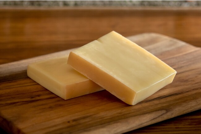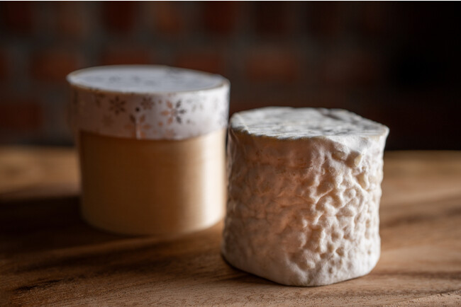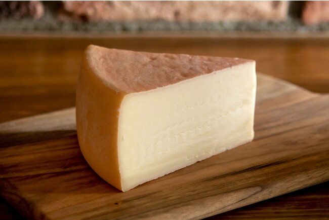 ラクレットチーズの平均熟成期間3カ月を、1ヶ月程度で切り上げて、若めの仕上げにしています。穏やかに感じる酸味とミルク感を楽しめます。こちらもフライパンで焼いて、ブラックペッパーと蜂蜜、ドライトマトなどと一緒に楽しんで。