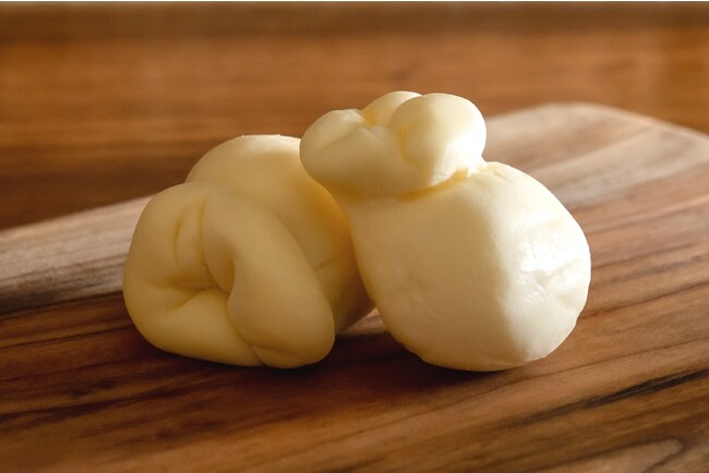新田牧場の新鮮で良質な牛乳でつくるひょうたん型のチーズ。つるして熟成乾燥させることから、このようなユニークな形をしています。少し焦げ目がつくくらいに焼いて、ドライいちじくや「どろ豚生ハム」と一緒にどうぞ。