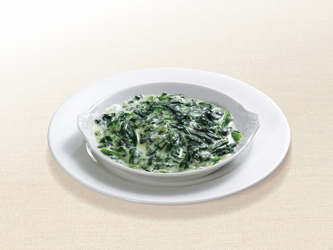 ベシャメルソース、牛乳、玉ねぎのみじん切り、バターを使ったベースに、ほうれん草の苦味とほのかに香るガーリックが良く合います。