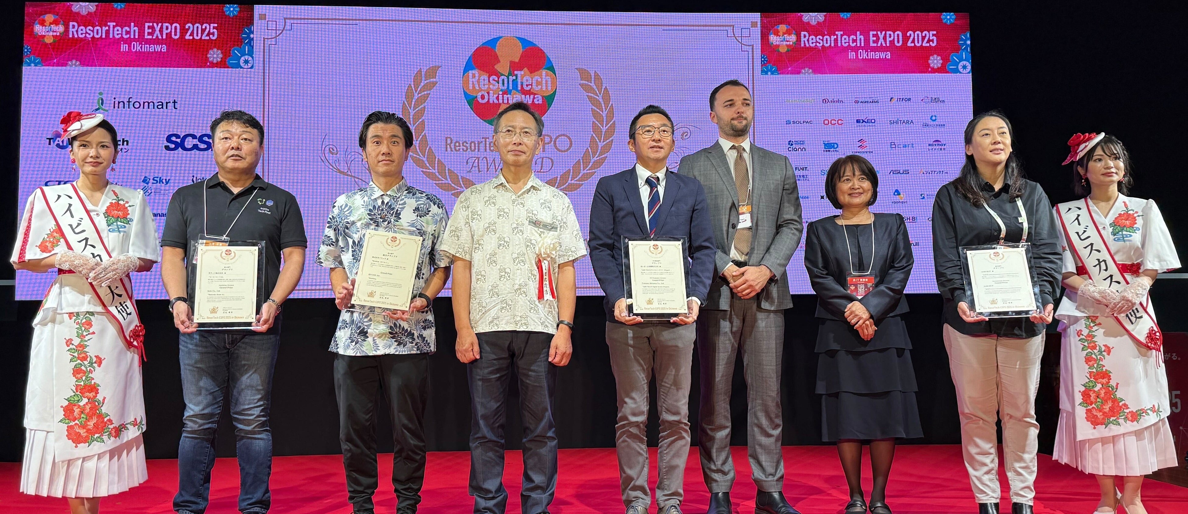 ResorTech EXPO in Okinawaに展示される技術・製品・サービス等、または沖縄全産業でのテクノロジー利活用に関わる企業、団体、案件について、「ResorTech EXPO Award選考委員会」が学術的・技術的観点、市場性や将来性等の視点から、イノベーション性が高く優れていると評価できるものを審査・選考し、表彰します。その中の展示部門でHoteKanが総合グランプリを受賞しました。