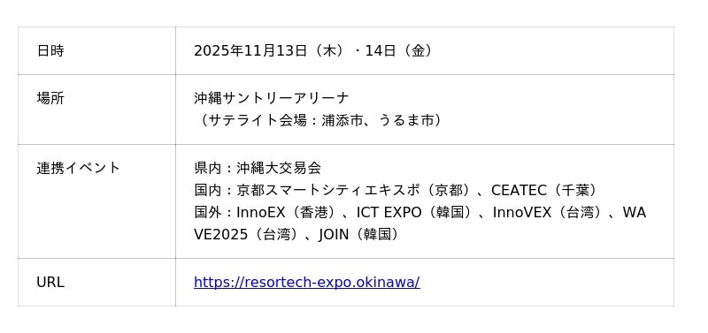 出展企業一覧: https://resortech-expo.okinawa/exhibitor/