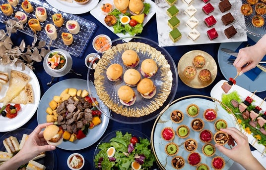 見た目も華やかで、オフィスパーティーにぴったりのメニューをご用意しました。定番の人気メニューに加え、季節限定のクリスマスミニケーキが登場。彩り豊かな前菜からボリュームのあるメイン、デザートまで、楽しめます。(※以下画像はイメージです)