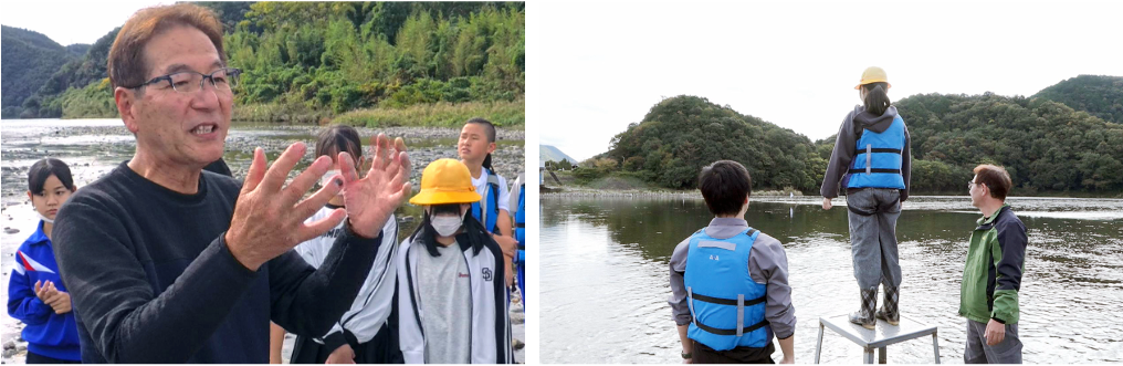 講師を務めた日置さんは「数年前は4艘だった舟が今は1艘。瀬張り網漁に必要な網を作る人がいない。瀬張り網漁は絶滅してしまうかもしれない。」と子どもたちに話しました。高齢化や後継者不足、道具の不足など、近年、各地で漁業は様々な課題を抱えており、地域固有の漁業技術が失われる可能性が高まっています。これらの技術は一度失われると復活が困難であり、文化そのものを失うだけではなく、川や海を支える人がいなくなることで環境への影響も懸念されています。今回の学習を通して児童らは、流域文化の魅力とその一方で抱える課題について考える機会となりました。