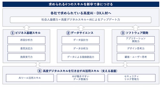 上記3つのスキルを支える基盤となる、AIの基礎理解、セキュリティ、論理的思考力などを網羅的に学習します。