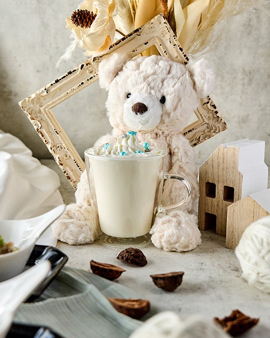 アフタヌーンティーとともに楽しい時間に色を添えてくれるのが、つぶらな瞳のホワイトベア。卓上にホワイトベアを1体ご用意し、アフタヌーンティーの品々と一緒に撮影をしてあなただけの世界観を作りお楽しみいただけます。