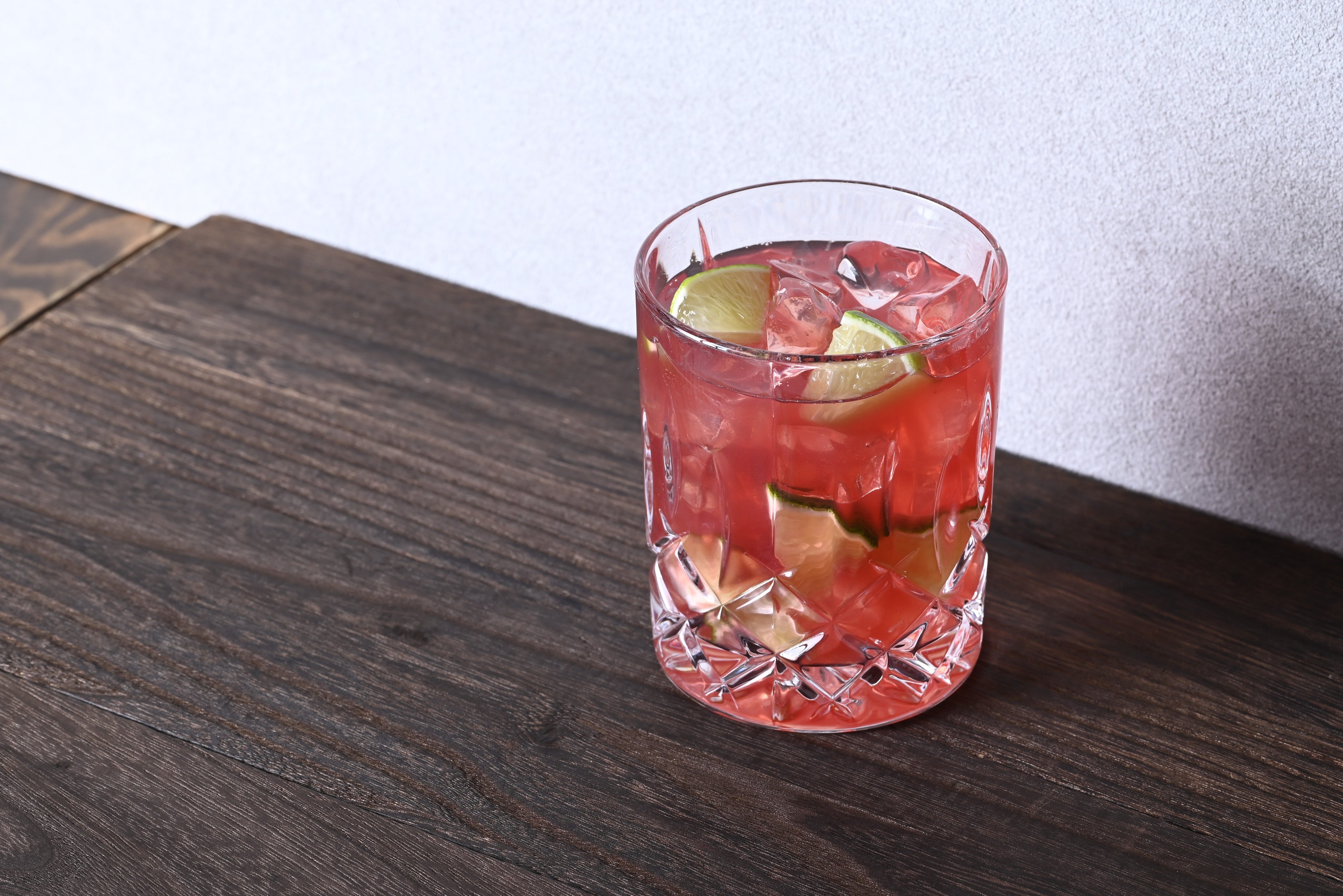 【メニュー説明】ブラジルの定番カクテル「カイピリーニャ」をアレンジ。ピタヤの果実味を前面に出して、クランベリー・ライムをプラスしたカクテルです。