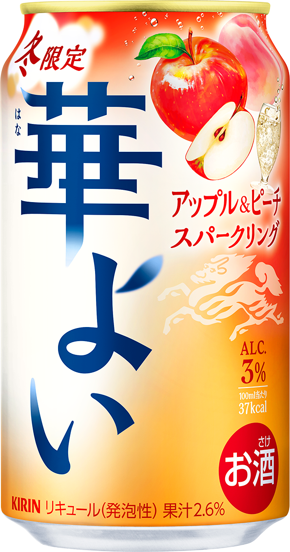 今回新発売する「キリン 華よい アップル&ピーチスパークリング(期間限定)」は、華やかなアップルの香りとすっきりした味わいに、ピーチの甘みを調和させることで実現した、果実味がありながら複雑で奥行きのある味わいを軽やかに楽しめる果実スパークリングです。冬にぴったりな特別感のあるおいしさを提案することで、既存のお客様はもちろん、新しいお客様にも手に取っていただく機会を創出します。