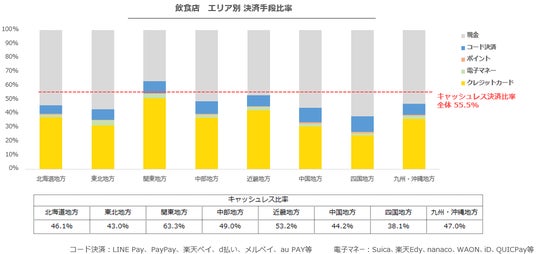 全国のキャッシュレス決済比率は55.5%で、前月から0.7pt増加した