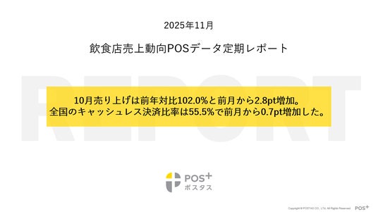 ポスタス株式会社(本社:東京都中央区、代表取締役社長:本田 興一、以下:ポスタス)は、本日、2025年10月度の飲食店売上動向についてPOSデータを基に集計した結果を公開しました。