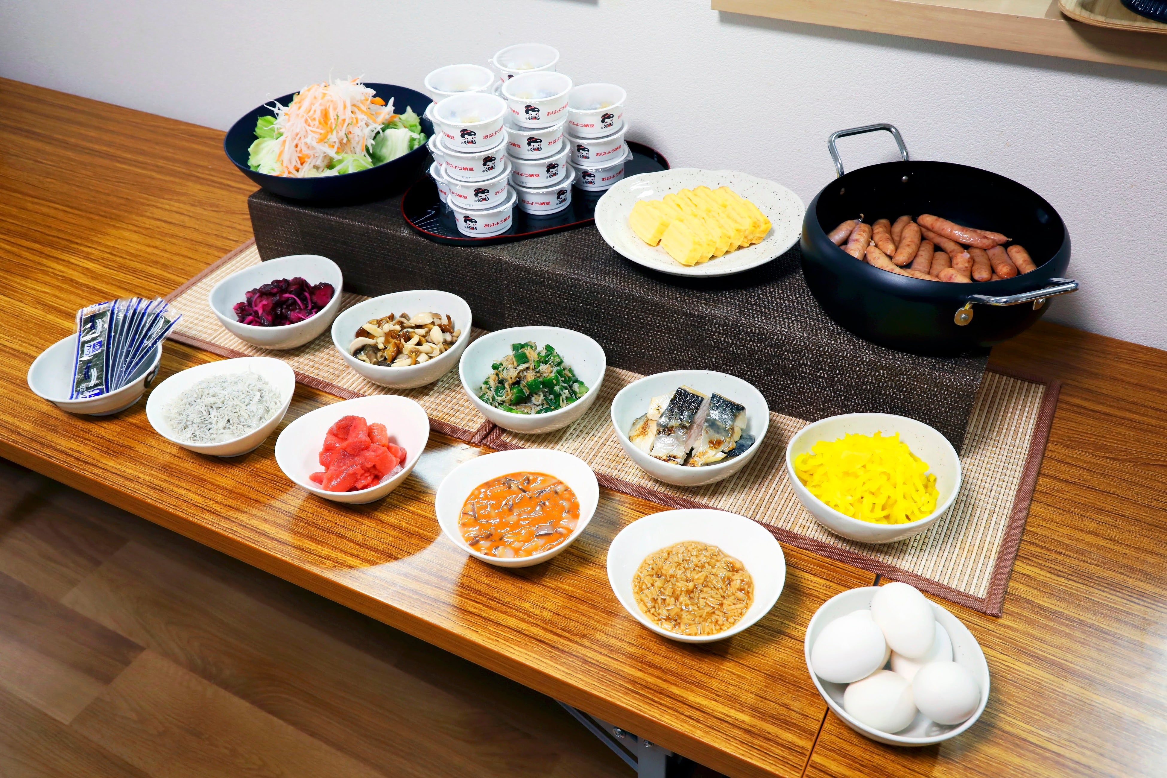 シェフの次に料理上手なシュフ(主婦)のまごころこめた手作りです。夕食メニューは長期滞在でも飽きの来ない日替わりで、栄養バランスばっちり・ボリュームたっぷりの家庭料理を意識しています。朝食は軽く食べたい方からしっかり食べたい方までご満足いただけるよう、バイキング形式のおかず、出汁茶漬けなどを提供しています。また早朝からお仕事がある工事事業者の皆様にも落ち着いて朝食をお召し上がりいただけるよう、朝6時から朝食を提供しています。