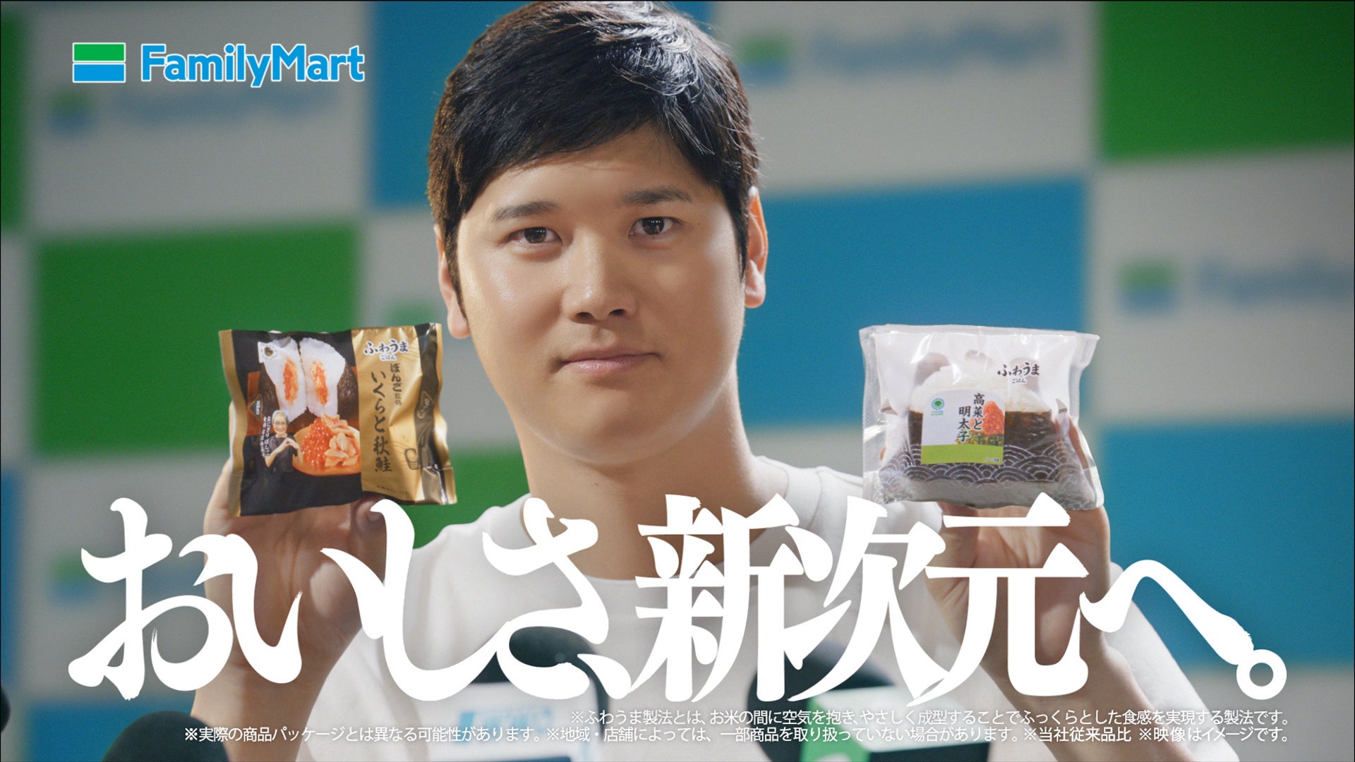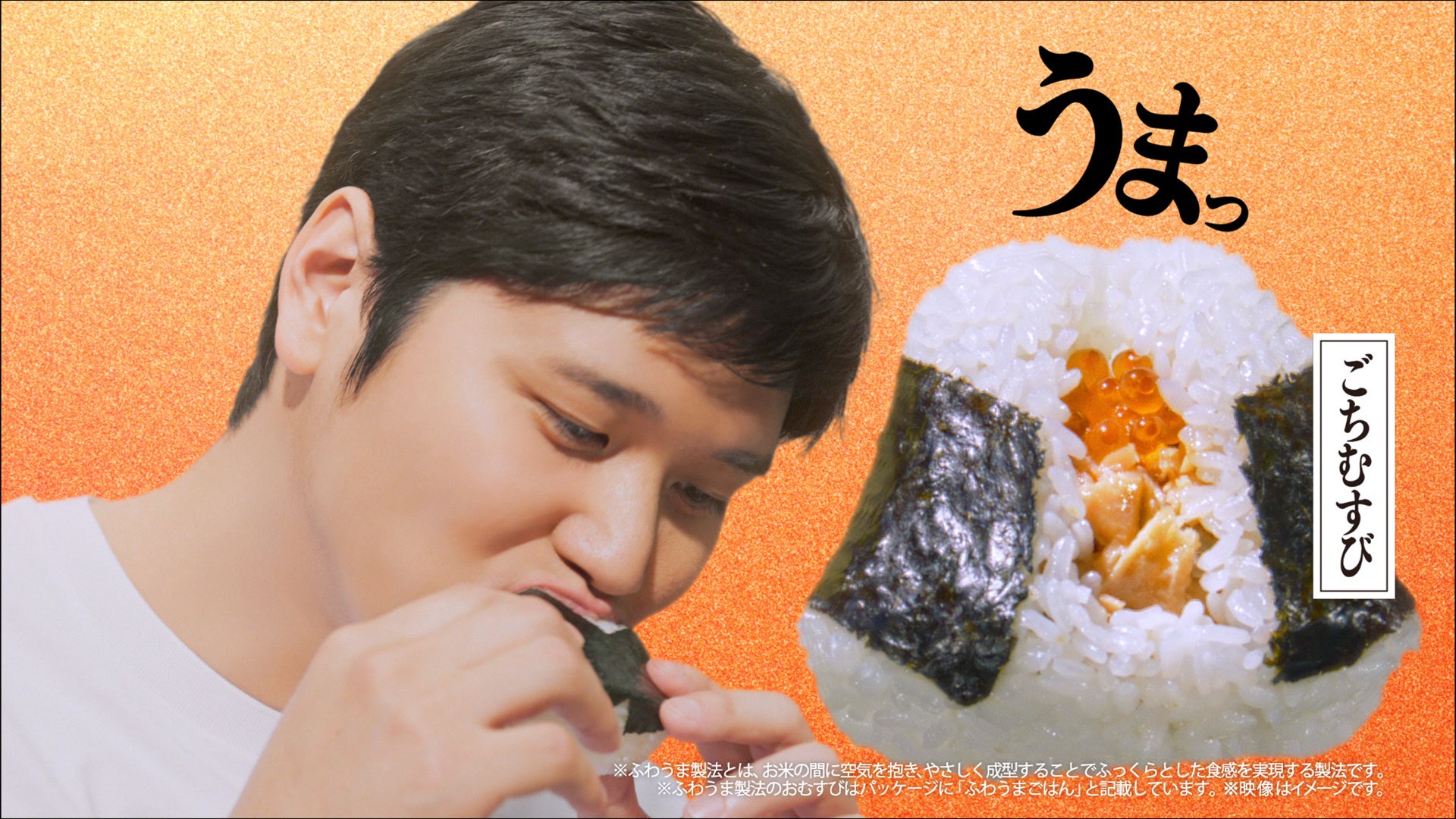 また、今年2月に当社の“おむすびアンバサダー”に就任した大谷翔平選手を起用した新キービジュアルおよび、新CMを放映いたします。CMでは、今回発売する「ごちむすび」と「直巻おむすび」を大谷選手が豪快に頬張る様子を通じて、「ふわうま製法」で仕立てたおむすびのおいしさを表現しています。この機会に、ふわうま製法により進化したファミリーマートのおむすびと、大谷選手の新ビジュアルにもご注目ください。