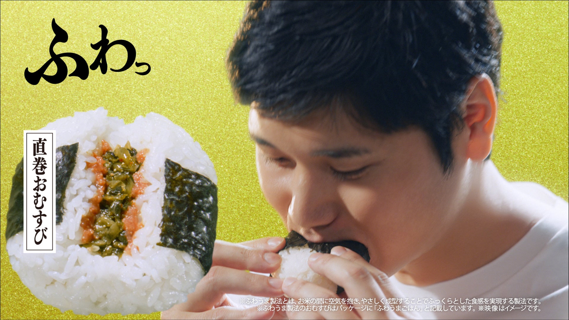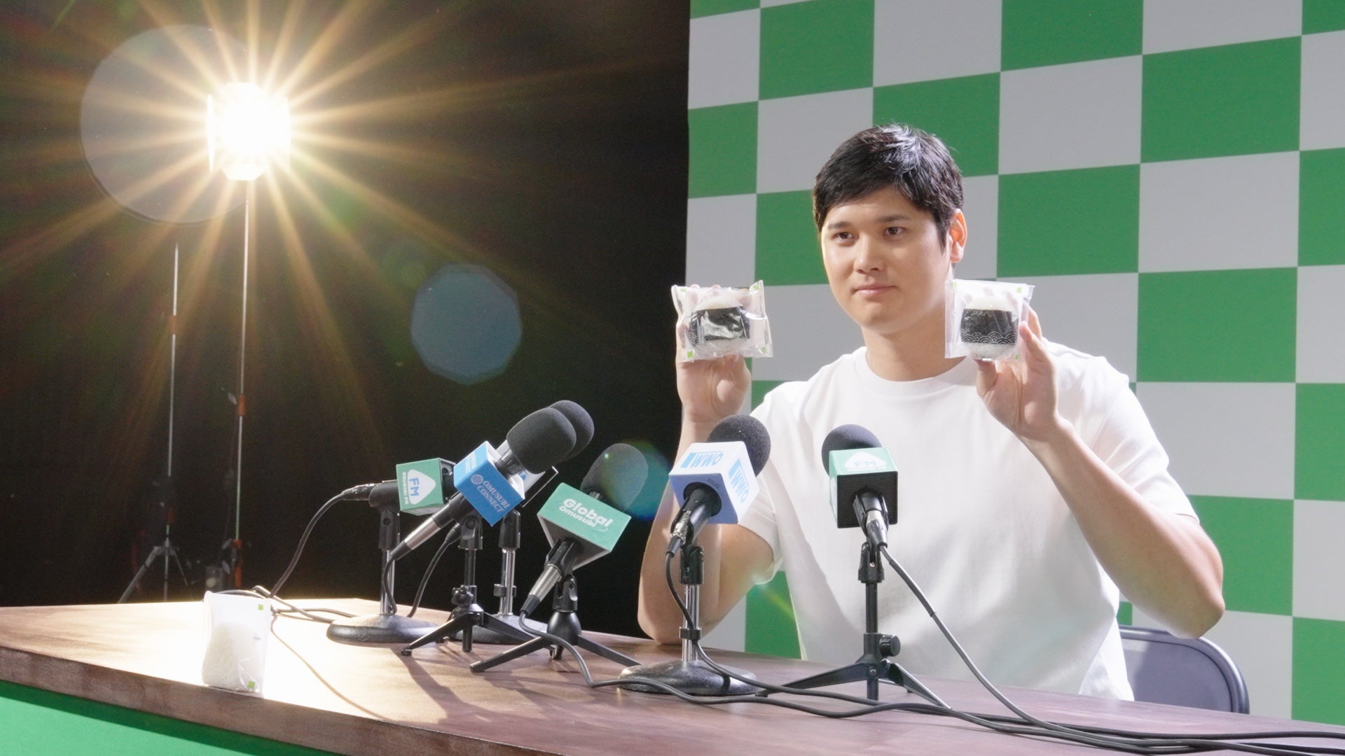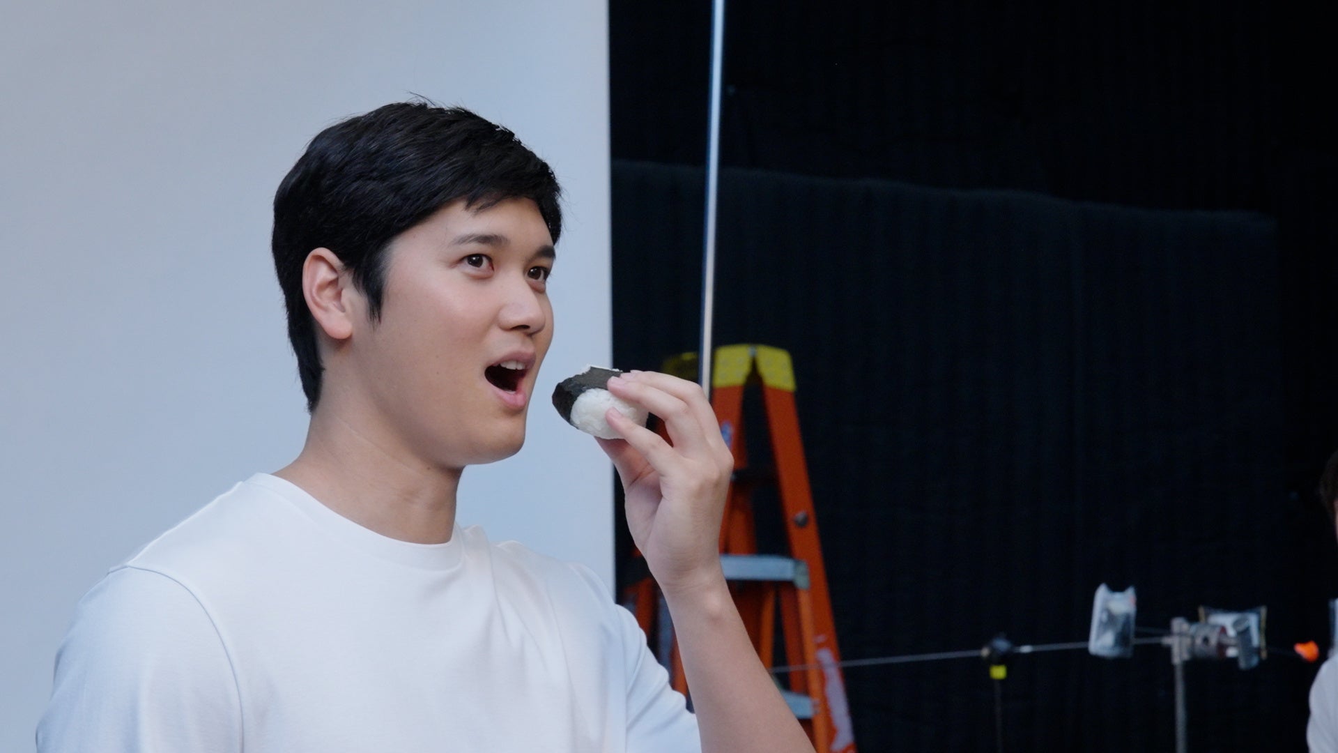 撮影では、大谷選手がおむすびを手に、演技の細かな確認を笑顔でスタッフに投げかける場面も。クールな表情と、おむすびを頬張る表情のギャップ、「ふわうま」に仕上がった本格的なおむすびの魅力に、ぜひご注目ください。