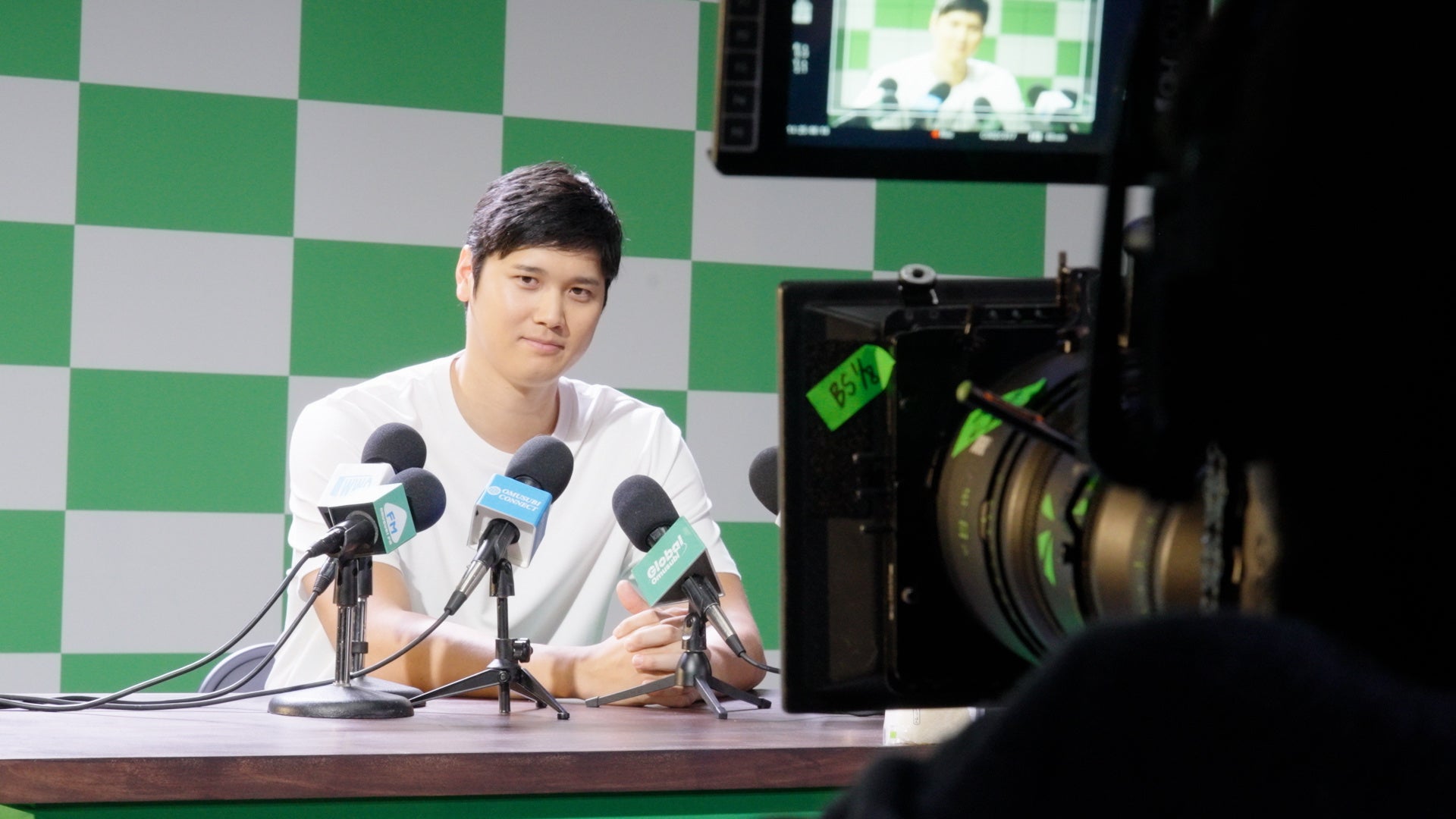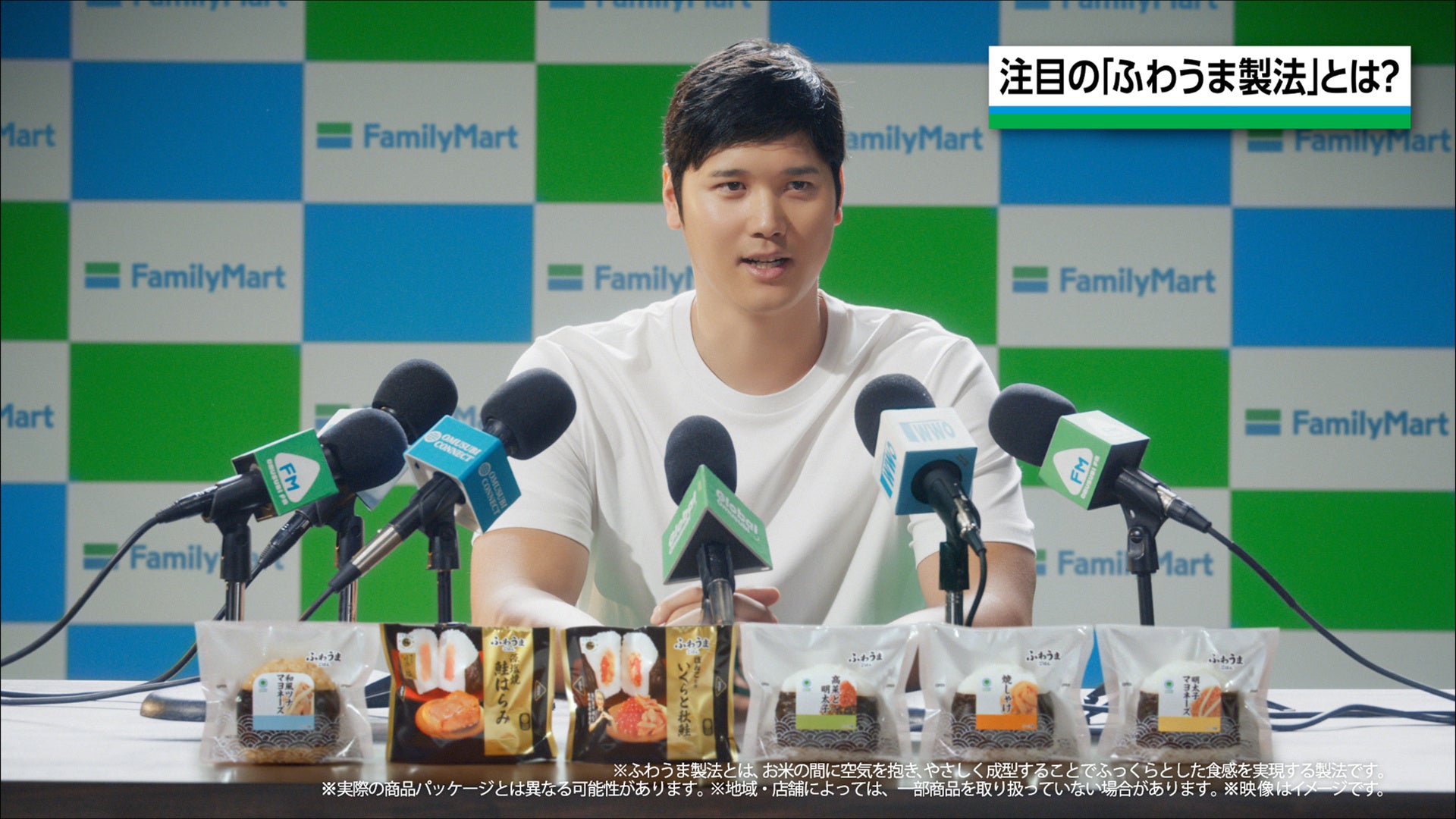 前回に続き、記者会見風のスタイルで展開される今回の新CMでは、「ふわうま製法」によって進化したファミリーマートのおむすびを大谷選手が発表します。