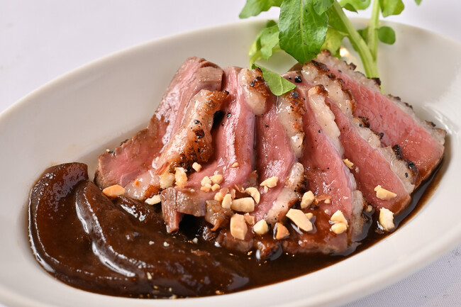 スパイスでマリネしたタンを低温調理しました。凝縮した味を二種類の食感で楽しんでください