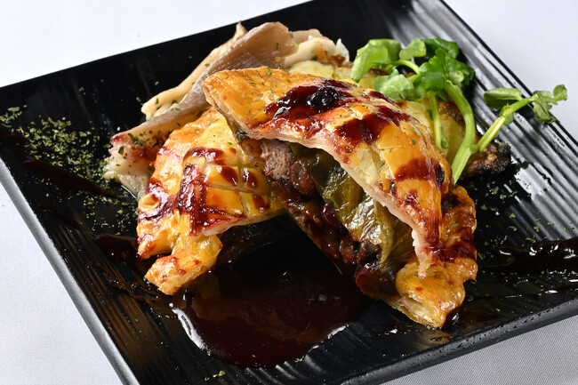 秋をイメージしたジビエのパイ包み焼き。後味がほろ苦いソースと合わせて召し上がってください