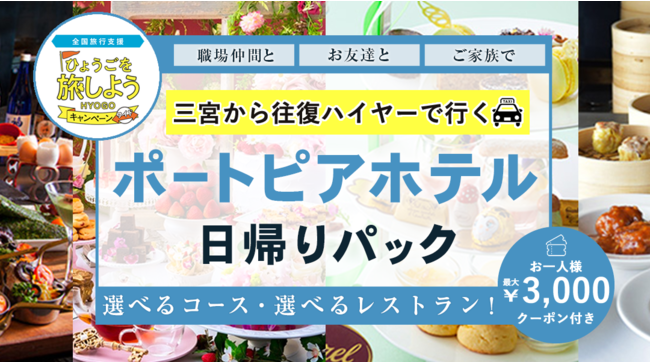 選べるポートピアホテル日帰りパックについて ポートピアホテルのレストラン3店舗から選べるコース。三宮からホテル間の往復ハイヤーとお食事がセットになったパックツアー♪ 兵庫を旅しようキャンペーンワイドを利用してお得にお食事が楽しめるプランです。