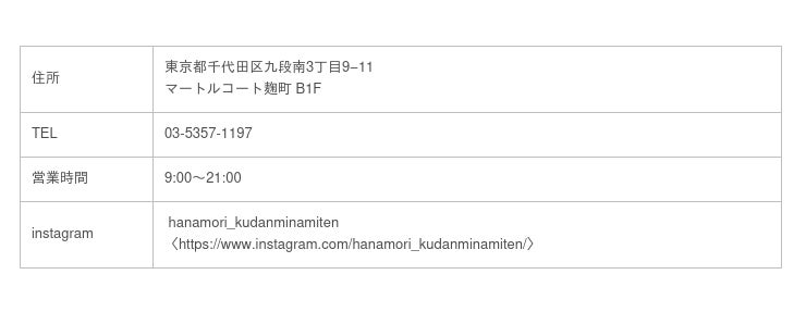株式会社sommet farm(本社:東京都千代田区飯田橋1丁目3番8号、代表取締役:大塚 龍之介)は、東京・九段南に「Cafe Hanamori 九段南店」(住所:東京都千代田区九段南3丁目9−11 B1F、TEL:03-5357-1197)を、'22年11月8日(火)オープンいたします。