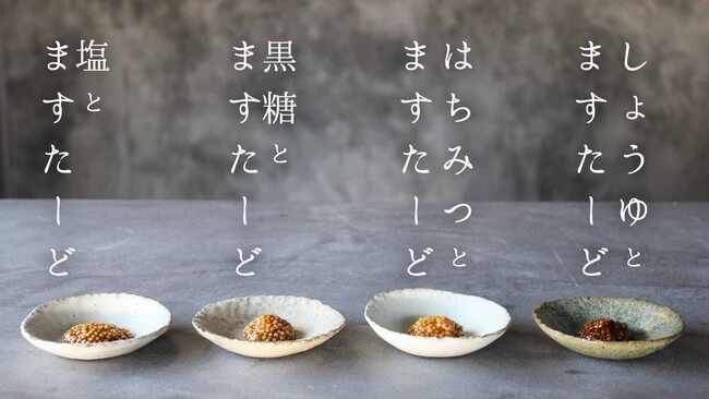 様々な食材や料理をより楽しめる為に『 玄米黒酢のますたーど 』を4種類ご用意いたしました。