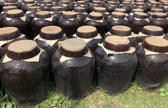 玄米黒酢はコクがあり、まろやかな印象を受けます。昔からその製法は変わらず、今も露天でかめ壺で作られています。