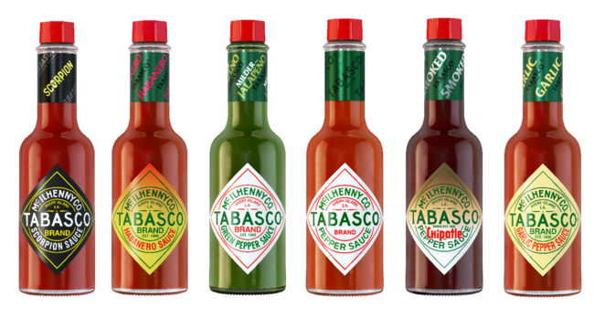 TABASCO(R) BrandはオリジナルのTABASCO(R)ソースの他にも、TABASCO(R)ハラペーニョソース、TABASCO(R)ガーリックソース、TABASCO(R)チポートレイソース、 TABASCO(R)ハバネロソース、TABASCO(R)スコーピオンソースなど、数々のペパーソースを販売しています。