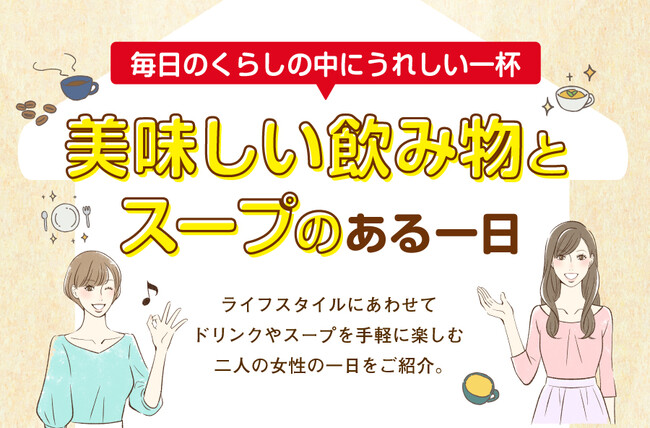 毎日がんばっているわたしに。いつも笑顔でいてほしいご家族に。ギフトにも普段の食卓にもおすすめのドリンク&スープを集めたカタログです。