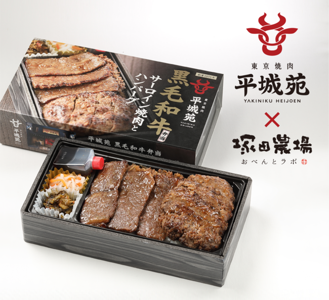 ナカやデパ地下などで中食事業を展開する株式会社塚田農場プラス(本社:東京都豊島区、代表取締役社長:森尾太一)は、和牛を極める一頭買い焼肉の「平城苑」を運営する株式会社平城苑(本社:東京都足立区、代表取締役社長:鏑木順之)とのタッグで「平城苑黒毛和牛弁当 サーロイン焼肉とハンバーグ」を開発し、東京駅「プレシャスデリ東京」において11月下旬から販売を予定しており、以下のスケジュール・方法にて特別先行販売を実施いたします。