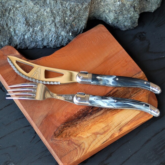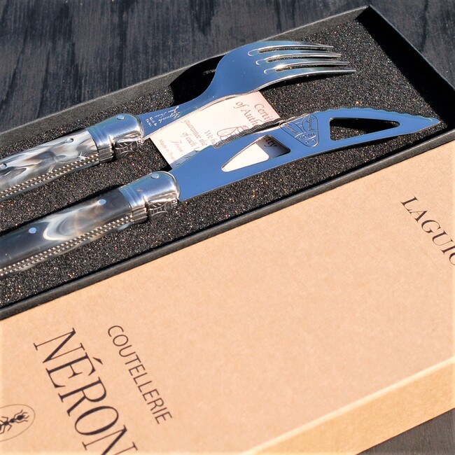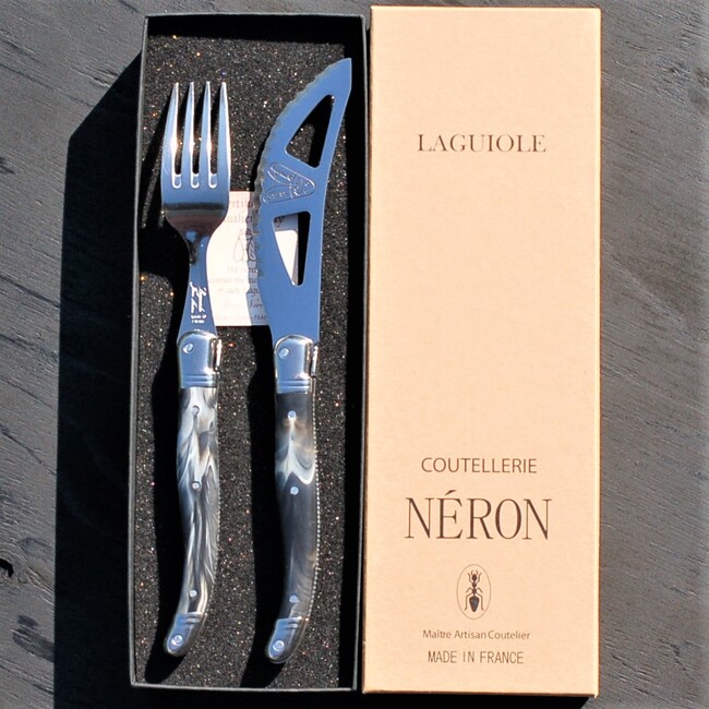 ライヨール ABS ハンドル ピザナイフ フォークセット 黒大理石風 ギフト箱入り フランス製 NERON