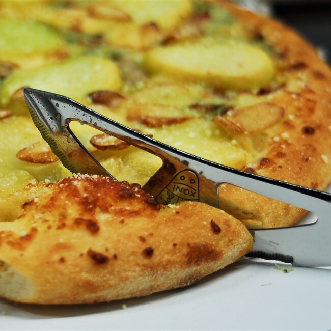 丸い刃のピザカッターを使って上手く切れない、そんな経験はありませんか? ライヨールのピザナイフは専用設計だからナポリ風、ミラノ風、パンピザ、ピザトーストもスイスイとカットします。