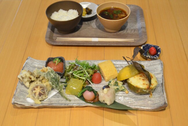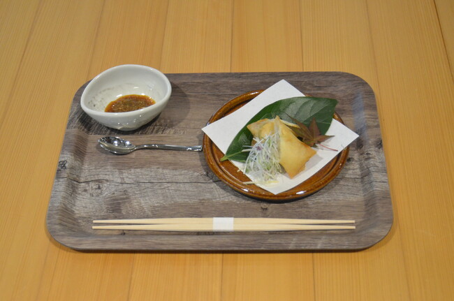 料理は、レモネーディアの豊かな香り、食感も特長の「ふぐ皮とおこわの春巻」、特製ハンバーグと、ミニトマトやサツマイモなどの野菜を煮込んだホットパイ、ラディッシュの田楽、ミカングラタン、次郎柿とクリームチーズ、生ハムのワッフルなどです。