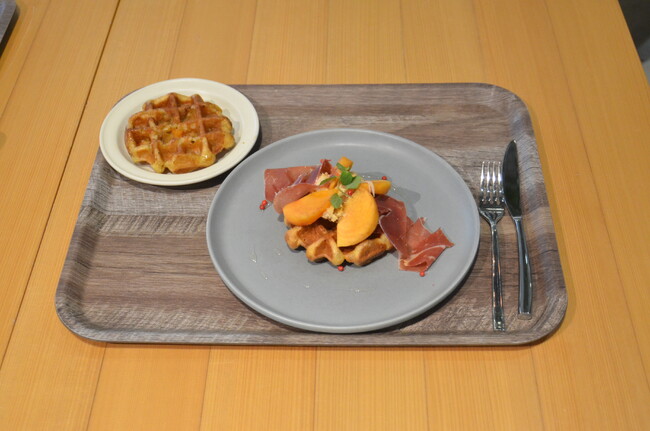 ◇次郎柿とクリームチーズと生ハムのワッフル ~ベル・ファーム鈴木さんの育てた次郎柿WASHAワッフル~