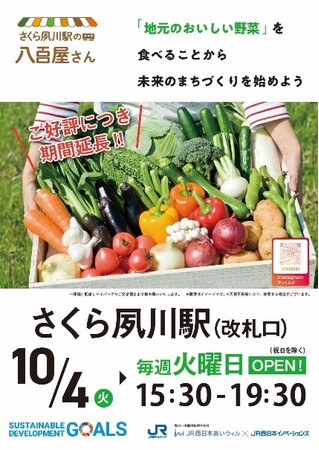 JR西日本グループの障がい者雇用を推進する特例子会社である株式会社JR西日本あいウィル(兵庫県尼崎市、取締役社長:三輪 正稔)と、JR西日本グループのオープンイノベーションを推進する株式会社JR西日本イノベーションズ(大阪市北区、代表取締役社長:奥野 誠)は、共同で「地産地消」「安心・おいしい」と「障がい者活躍」「農福連携」をキーワードに関西圏近郊の新鮮野菜を中心に取り揃える「○○駅の八百屋さん」を展開しておりますが、ご好評につき「さくら夙川駅の八百屋さん」の営業継続と、2022年5月の営業実施時にご好評をいただきました「甲子園口駅の八百屋さん」の営業を再開致します。