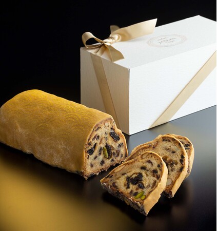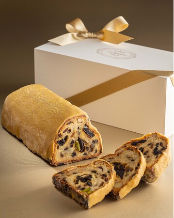 伝統的なクリスマスの発酵菓子です。ラム酒やキルシュなどの洋酒にじっくりと漬け込んだ7種類のドライフルーツとナッツをたっぷり練りこみ、コクのある深い味わいのシュトーレンです。上品な甘みと口どけのよい和三盆で仕上げています。日々熟成するので、食べるたびに深まる味わいをお楽しみ頂けます。