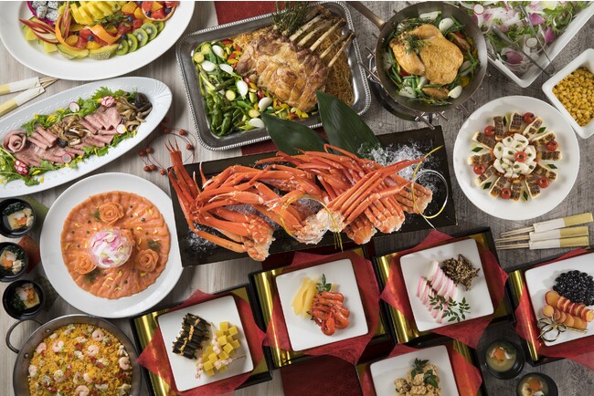 おせち料理やお雑煮などのお正月料理をはじめ、鉄板焼や海鮮丼、中国料理 四川の人気メニューやスイーツなど、目にも華やかなメニューが並びます。また、ディナータイムにはスペシャルな一品として、お1人様につき1杯、佐渡産の紅ズワイ蟹をご用意します。お食事のほか、ホテル宿泊券やお食事券が当たる抽選会も実施します。お正月のひとときを、ご家族皆さまでお楽しみください。
