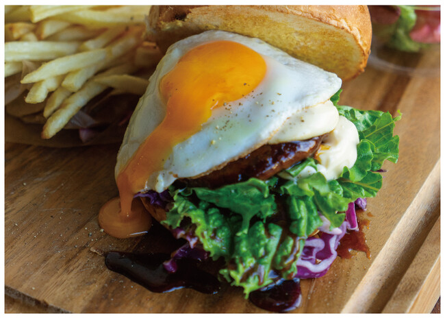 自然が豊かな町田薬師池公園四季彩の杜西園内にある44APARTMENT薬師池店では町田日本一醤油を使用した照り焼きバーガーが絶品だ。とろ~り半熟卵と特製照り焼きソースの相性抜群。