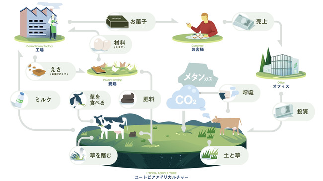 実証実験を始めたばかりのため、完全にオフセットできているとは限りませんが、ハレの日に食べるお菓子だからこそ、環境にも引け目を取らない作り方を選択しました。自社放牧牧場で作った牛乳でお菓子を作り、その販売した利益を土地に再投資し地球にも動物にも人にも優しい循環を作ることを目指しています。また、卵においても平飼い方式を採用した自社養鶏場で元気に育った鶏の新鮮な卵を使用しています。