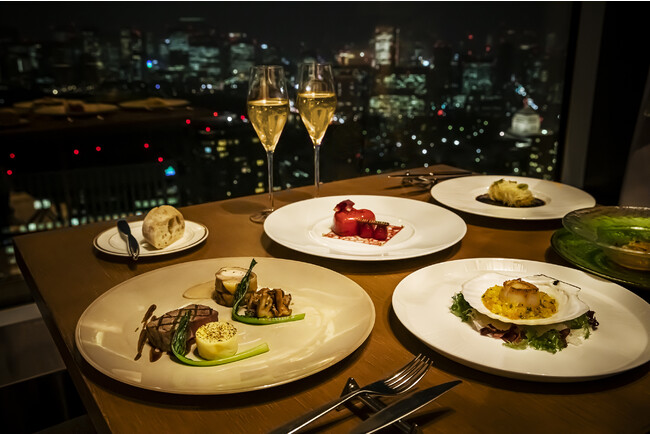 ホテル最上階の「All-Day Dining OASIS GARDEN」が贈るクリスマスディナー。メインディッシュには2種のソースで楽しむ黒毛和牛とホロホロ鳥をご用意。高層階からの夜景と共に思い出に残るひとときをお過ごしいただけます。