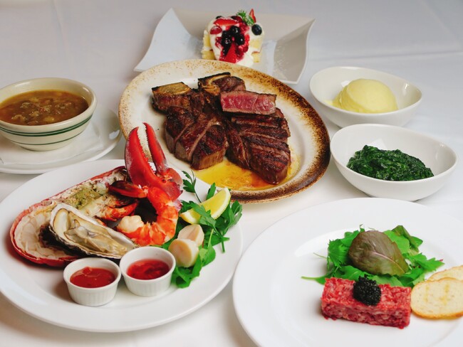 前菜は海の幸か、黒毛和牛のタルタルをチョイス。メインは最上級品質の熟成肉のステーキ(フィレミニョンもしくはTボーン)。デザートはクリスマスエディションにアレンジしたベリーソースたっぷりのショートケーキ。プチクリスマスプレゼントもついた大変お得なプランです。